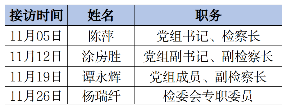 为深入贯彻习近平法治思想,展现新时代检察机关践行以人民为中心的司法理念,提高12309检察服务中心的知晓度和人民满意度,推动矛盾纠纷化解,促进案结事了人和,现将全南县人民检察院2024年11月接访安排公告如下: